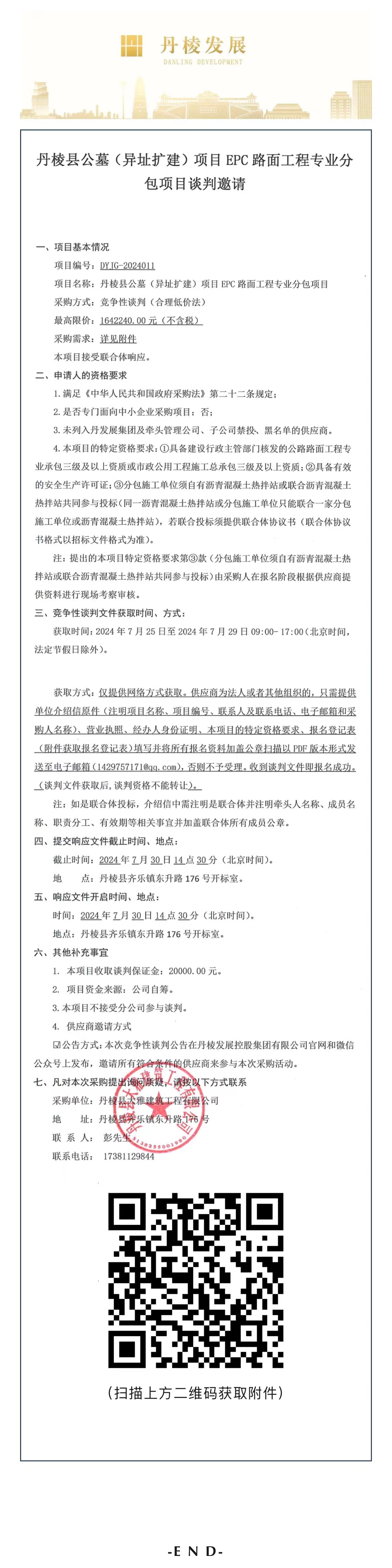 丹棱縣公墓(異址擴(kuò)建)項(xiàng)目EPC路面工程專業(yè)分包項(xiàng)目競(jìng)爭(zhēng)性談判邀請(qǐng)公告