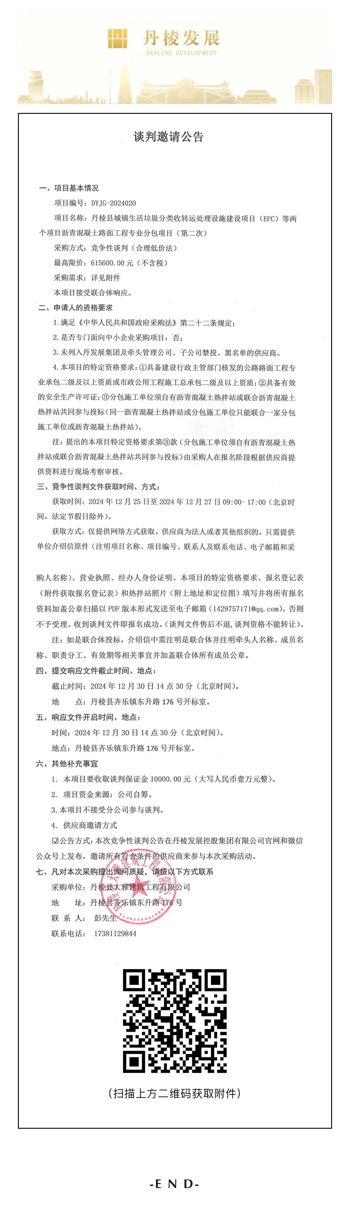 丹棱縣城鎮(zhèn)生活垃圾分類收轉(zhuǎn)運(yùn)處理設(shè)施建設(shè)項(xiàng)目(EPC)等兩個(gè)項(xiàng)目瀝青混凝土路面工程專業(yè)分包項(xiàng)目(第二次)談判邀請(qǐng)公告
