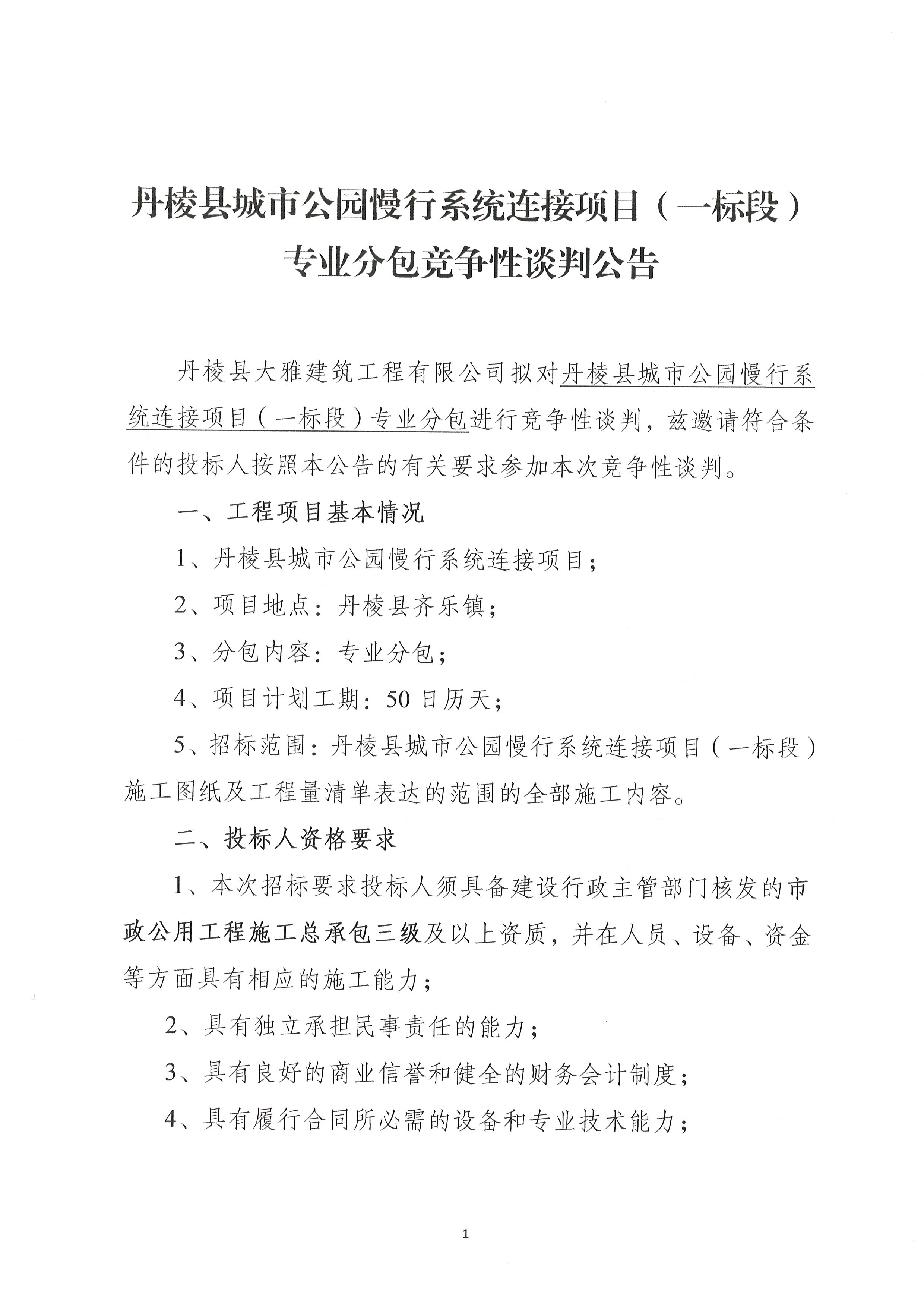 【大雅建筑公司】丹棱縣城市公園慢行系統(tǒng)連接項(xiàng)目(一標(biāo)段)專業(yè)分包競(jìng)爭(zhēng)性談判公告