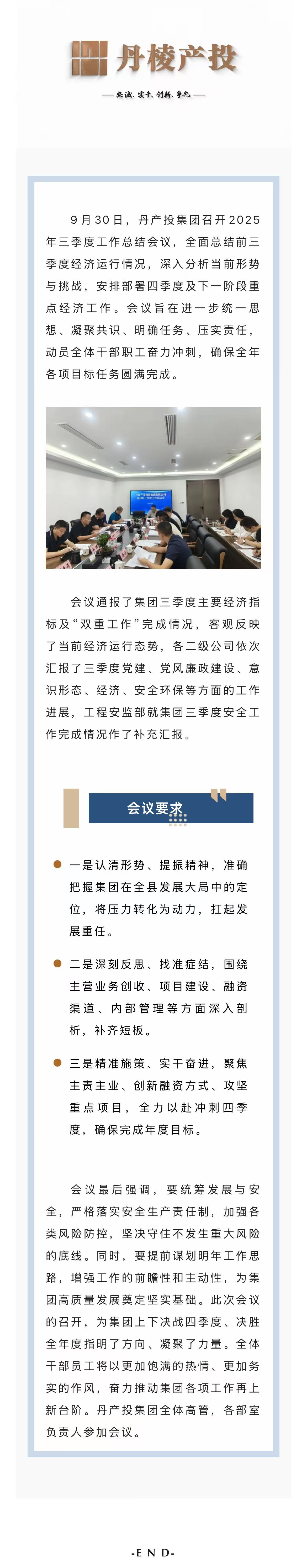 錨定目標(biāo) 精準(zhǔn)施策 全力沖刺全年任務(wù)丨丹產(chǎn)投集團(tuán)召開(kāi)2025年三季度工作總結(jié)會(huì)議
