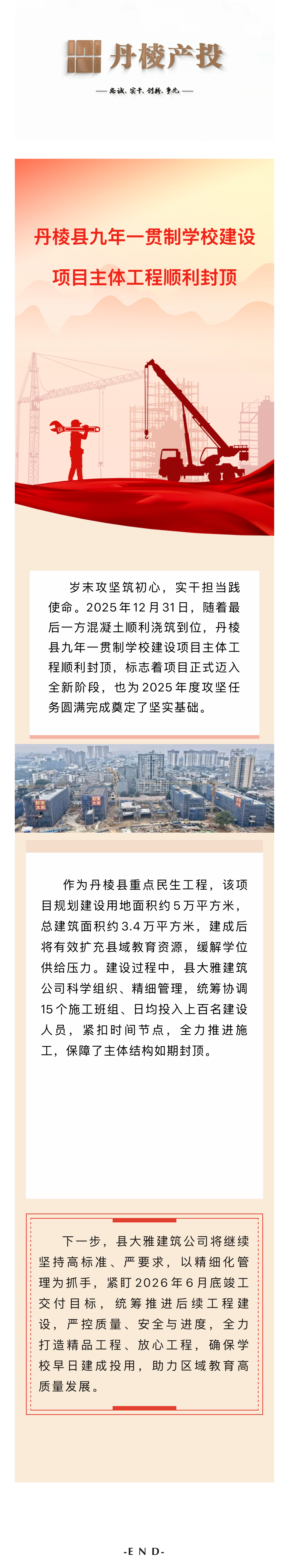【縣大雅建筑公司】筑跡:丹棱縣九年一貫制學(xué)校建設(shè)項目主體工程順利封頂