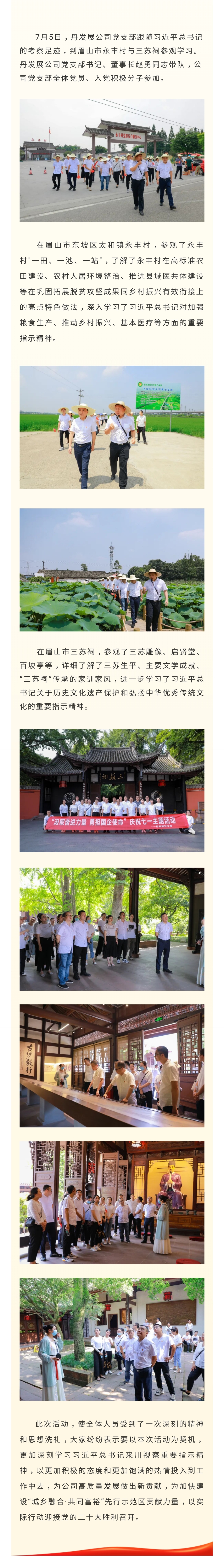 【汲取奮進力量 勇擔國企使命】丹發(fā)展公司黨支部赴永豐村、三蘇祠參觀學習